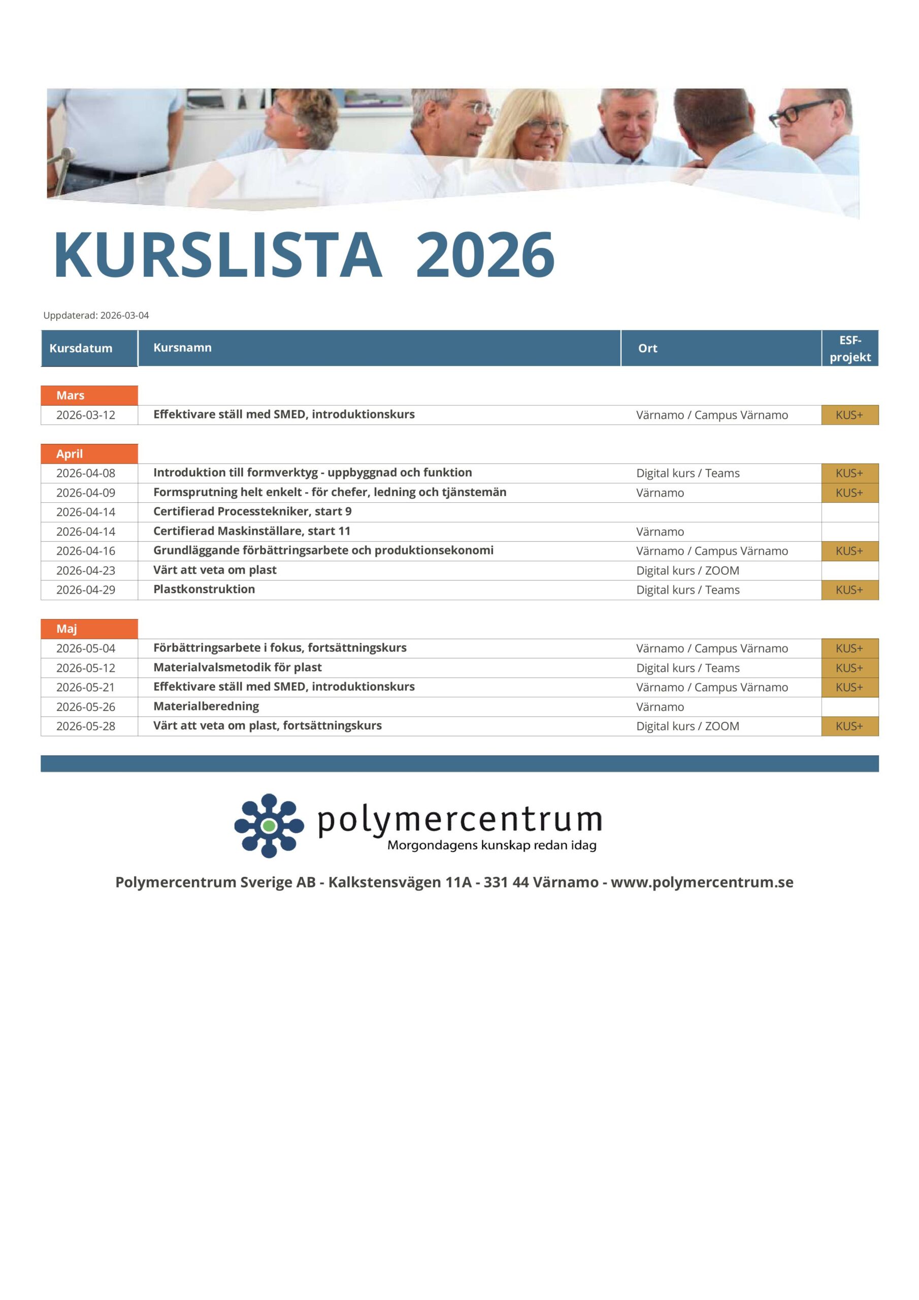 AKTUELL KURSLISTA (datumordning, PDF)